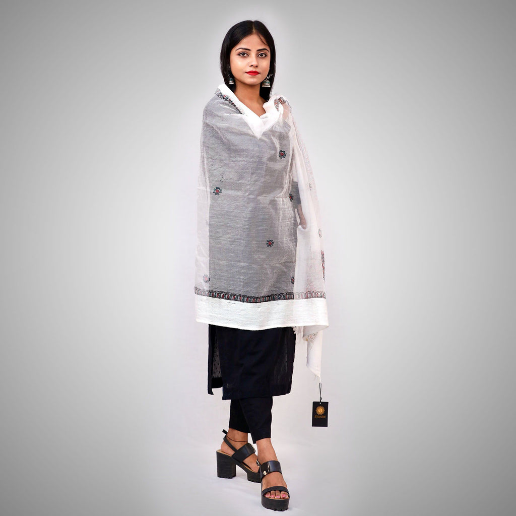 This Mithila Folk Art Style Duppatta can be used as ethnic and causal wear in different events . You can use it as a office wear or casual both. Make a style statement by owning Mithilagram Super brand products. Women of mithila have made with by nib and brush. On this Butta Work with Flower Design is done at border on it which has a symbolic significance in mithila culture.